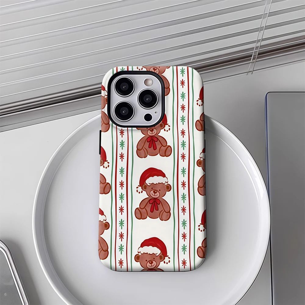 Christmas Teddy Bear Stripes IPhone17 Must-Haves Phone Case for IPhone 17 16 15 14 13 12 Pro Max Plus Double-layer Back Cover