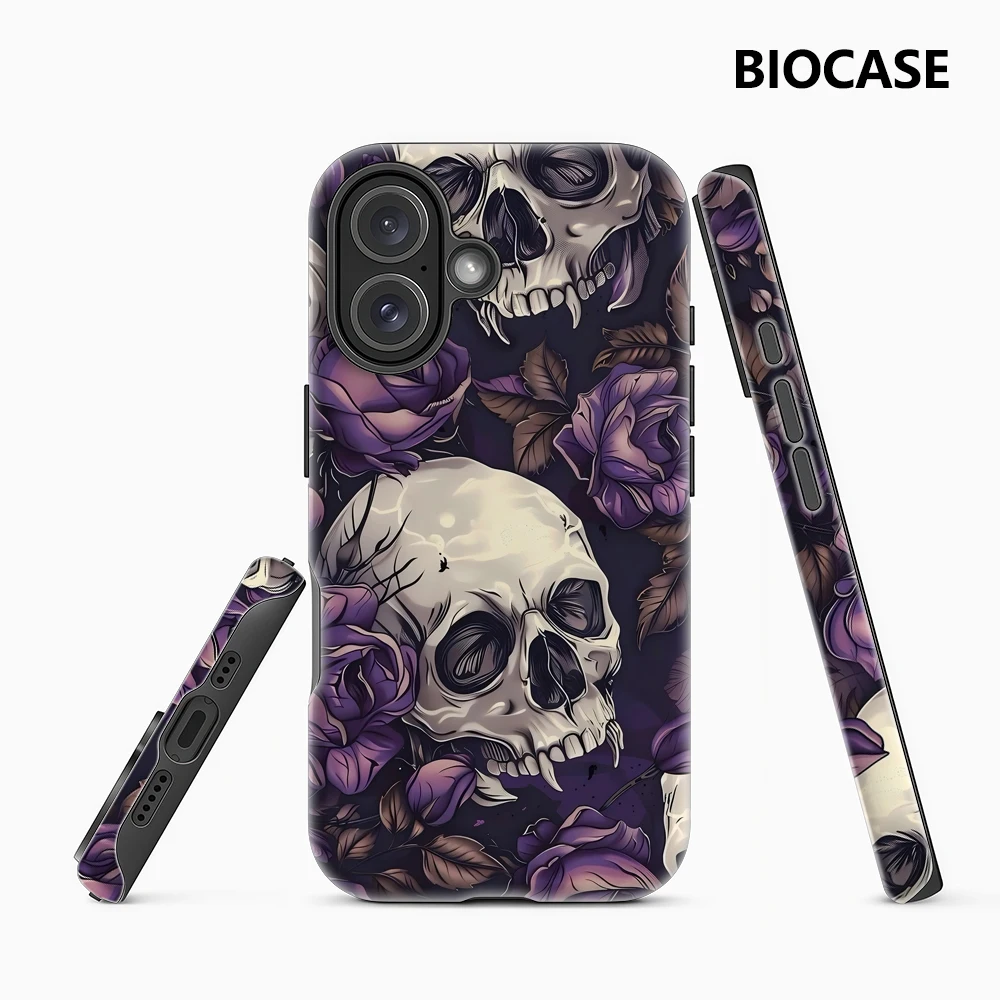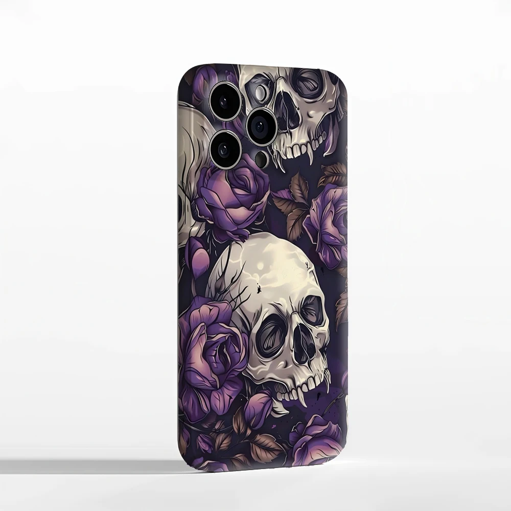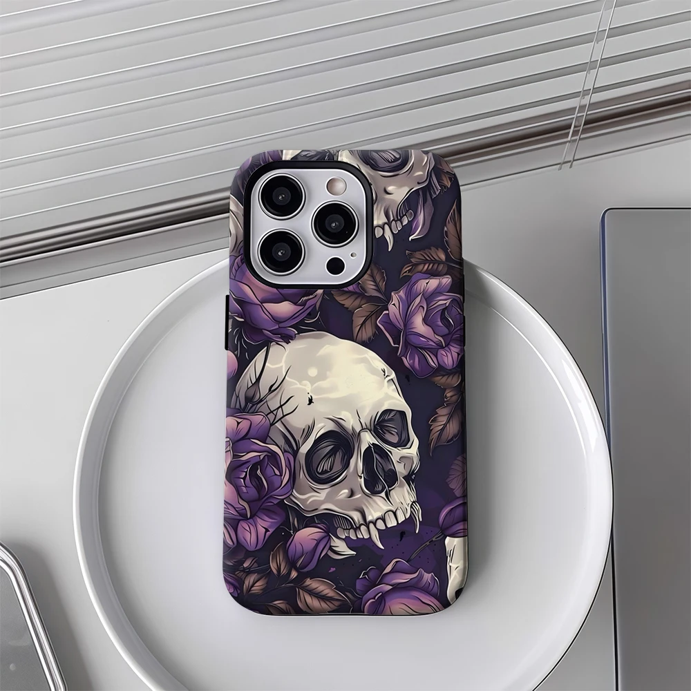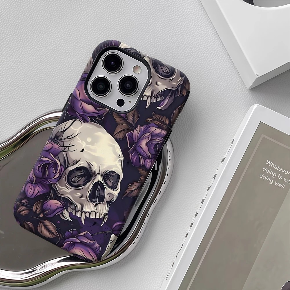 Skulls and Purple Roses IPhone17 Must-Haves Phone Case for IPhone 17 16 15 14 13 12 11 Pro Max Plus Double-layer Back Cover
